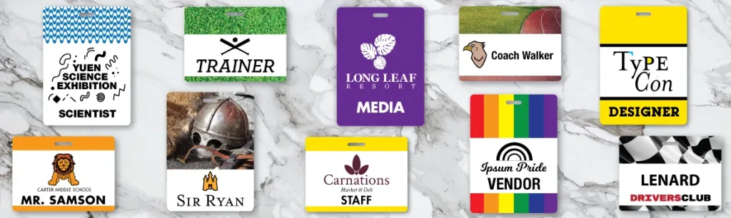 Our Semi-Custom Badges are ready with multiple sizes and backgrounds available so you can emphasize your brand with ease and confidence. Or, razzle-dazzle your gang with a Custom Event Badge exclusively designed to suit the needs of your event.