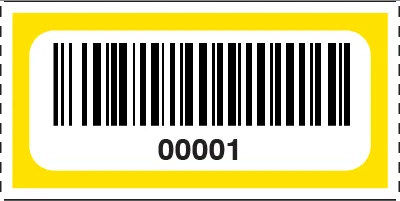 We print our Barcoded Roll Tickets in bright colors on white paper stock in rolls of 1000 tickets. Each 1″ by 2″ ticket has an easy to scan barcode (type 3 of 9 also known as barcode 39) and a human readable text number below that corresponds. Each roll is sequentially numbered. Custom start numbers can be requested by contacting our sales staff. The backside of the ticket has a watermark security feature.