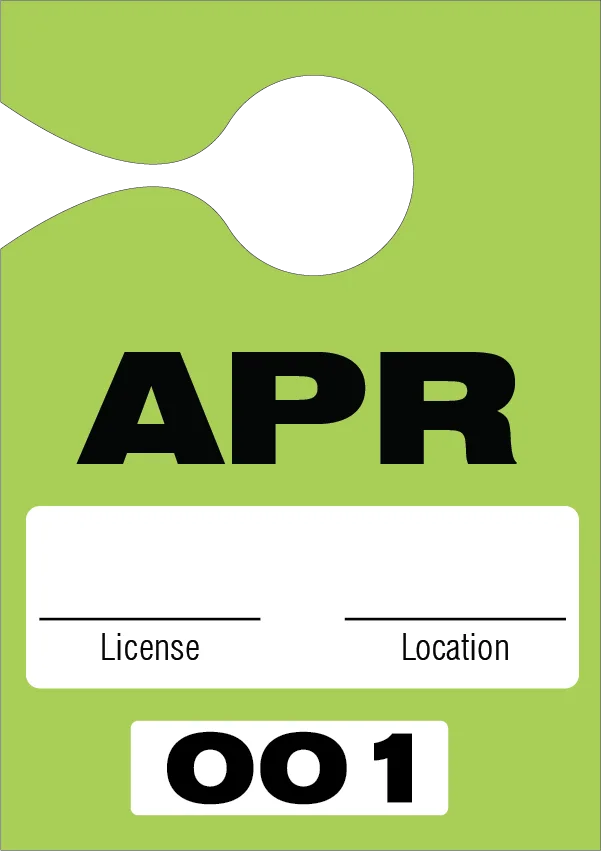 - Die Cut rear-view mirror hanger hole, making the permit transferable between vehicles.