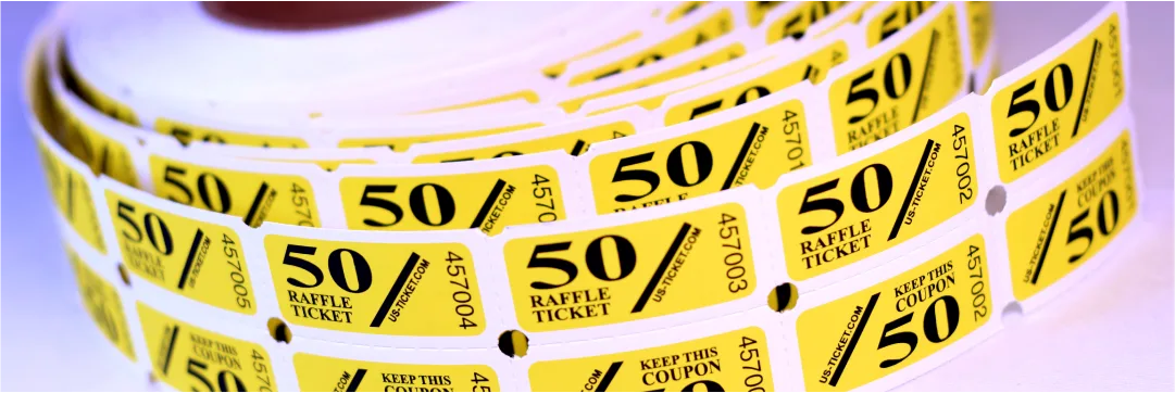 Raffle tickets are perfect for your fundraising events, giveaways, promotions and more! US-TICKET.COM provides many different raffle ticket options including those on a roll, printed on color stock and fully customized color tickets on bright white, durable paper stock. Choose a stock option below or give our friendly sales staff a call to discuss how you can customize our tickets to make your event stand out.
